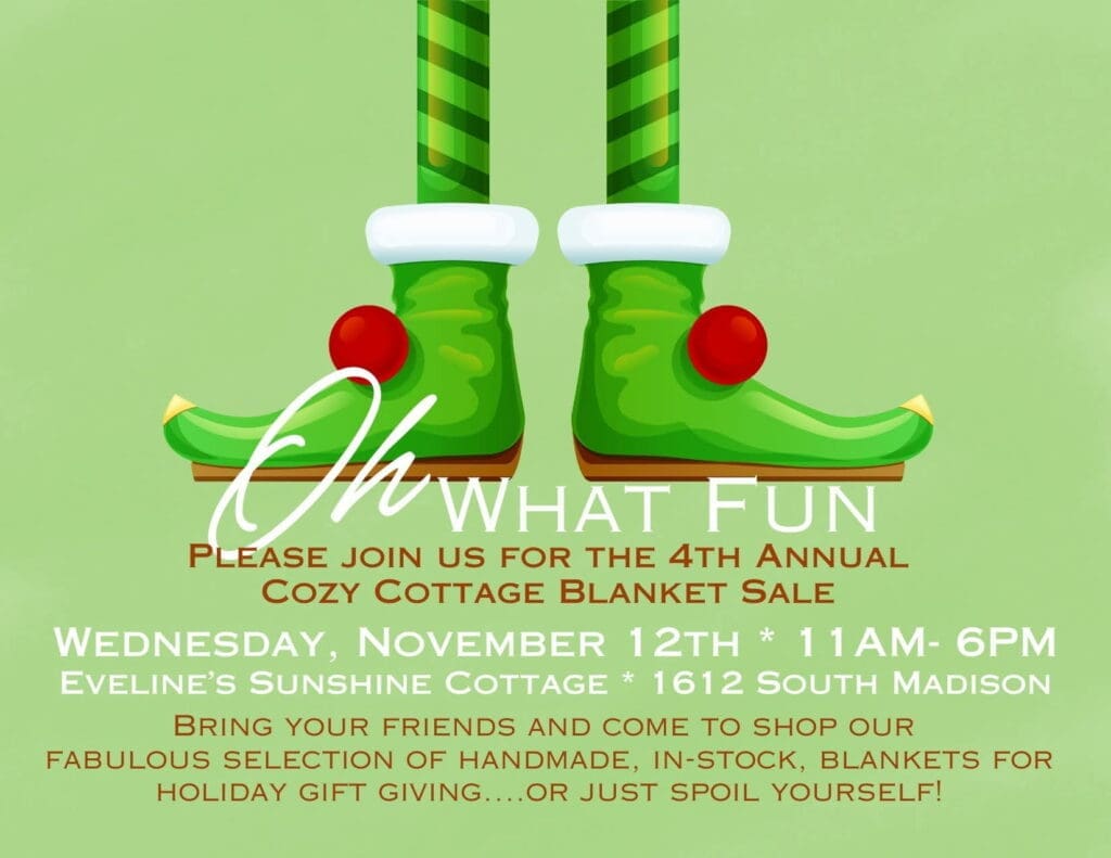 Join us for our 4th Annual Cozy Cottage Blanket Sale, benefiting Eveline’s Sunshine Cottage.